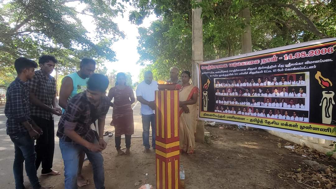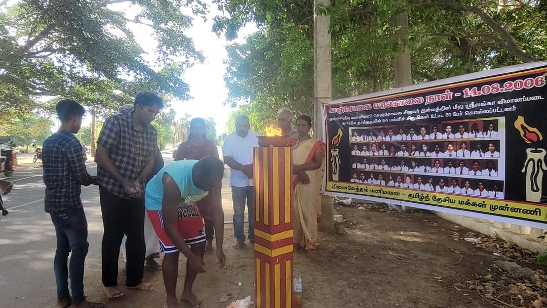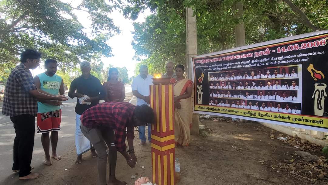 செஞ்சோலை படுகொலையின் 18ம் ஆண்டு நினைவேந்தல். இன்று 14.08.2024 புதன்கிழமை பி.ப. 3 மணிக்கு யாழ். முனியப்பர் கோவில் முன்றலில் தமிழ்த்தேசிய மக்கள் முன்னணியினரால் நினைவேந்தப்படது.
