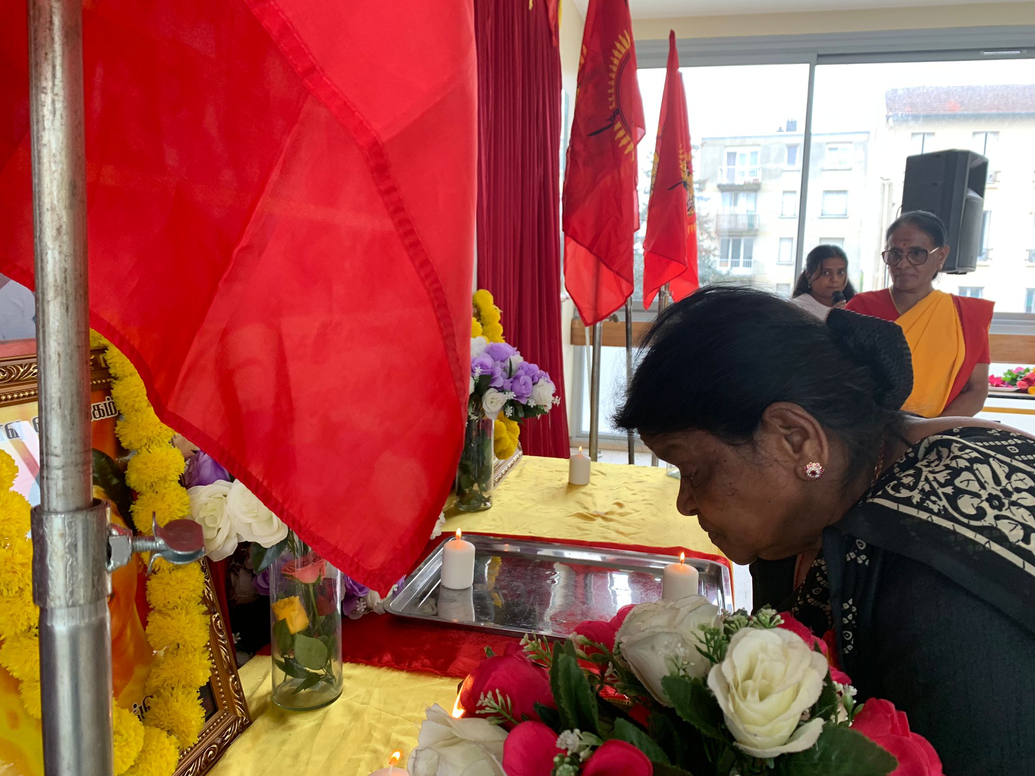 பிரான்சு தமிழர் ஒருங்கிணைப்புக்குழு பிரான்சு தமிழ்ப்பெண்கள் அமைப்பின் ஏற்பாட்டில் இடம்பெற்ற இந்நிகழ்வில் பொதுச்சுடரினை திரான்சி தமிழ்ச்சங்கத் தலைவர் திரு.பாபு அவர்கள் ஏற்றிவைக்க ஈகைச்சுடரினை 13.01.1994 அன்று பருத்தித்துறை கடற்பரப்பில் சிறீலங்கா கடற்படைமீது மேற்கொள்ளப்பட்ட தாக்குதலில் வீரச்சாவைத் தழுவிக்கொண்ட கடற்கரும்புலி சுதாஜினி அவர்களின் தாயார் ஏற்றிவைத்து மலர்வணக்கம் செலுத்தினார்.
