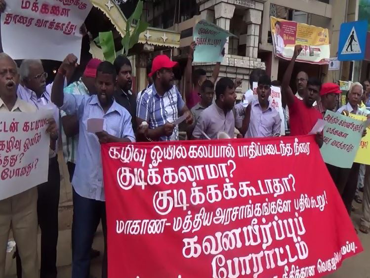 யாழ்ப்பாணம் சுண்ணாகத்தில் கழிவொயிலால் பாதிக்கப்பட்ட நீரை குடிக்கலாமா குடிக்ககூடாதா என மத்திய மாகாண அரசுகள் மக்களுக்கு கூறவேண்டும் என வலியுறுத்தி கவனயீர்ப்பு போராட்டம் ஒன்று இன்று யாழ்ப்பாணத்தில் இடம்பெற்றது
