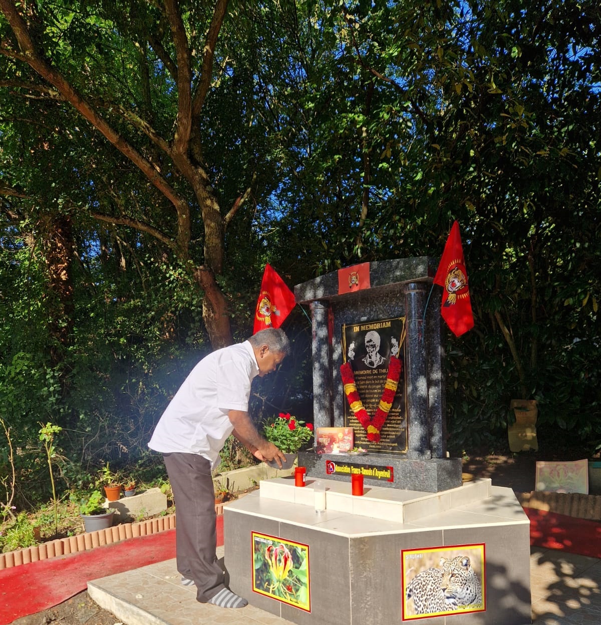 பிரான்சில் பாரிசின் புறநகர்ப் பகுதியில் ஓர் நகரமான ஆர்ஜெந்தே நகரில் ( PARC DU CERISIER) என்னும் இடத்தில் அமைந்துள்ள தியாகதீபம் திலீபனின் நினைவுக்கல்லின் முன்பாக 15.09.2024 காலை ஈகைச்சுடர் ஏற்றிவைக்கப்பட்டு மலர் கொண்டு வணக்கம் செலுத்தப்பட்டது. தியாக தீபம் திலீபனின் 37 ஆவது ஆண்டின் நினைவுகளை நெஞ்சிலே சுமந்து ஆர்ஜெந்தே வாழ் தமிழ்மக்கள், தமிழ்ச்சோலை மாணவர்கள், மற்றும் தமிழர் ஒருங்கிணைப்புக்குழு கட்டமைப்புப் பொறுப்பாளர்கள் மாவீரர் பணிமனை செயற்பாட்டாளர்கள், மாவீரர் குடும்பத்தைச் சேர்ந்தவர்கள், நாட்டுப்பற்றாளர் குடும்பத்தைச் சேர்ந்தவர்களும் பங்கு கொண்டிருந்தனர்.