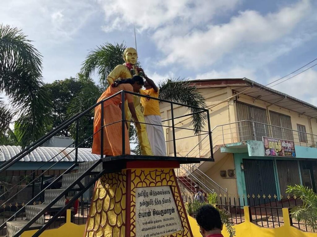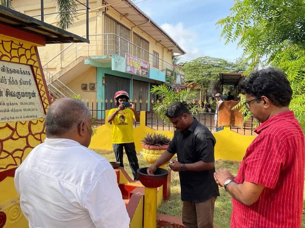 ஈழச்செய்திகள்சிறப்பு செய்திகள் யாழ்.உரும்பிராயில் தியாகி பொன்.சிவகுமாரன் நினைவுத்தூபி முன்பாக அஞ்சலி! By வானகன் - September 26, 2024 0 174 யாழ்.உரும்பிராயில் அமைந்துள்ள தியாகி பொன்.சிவகுமாரன் நினைவுத்தூபி முன்பாக தியாக தீபம் நினைவு ஊர்திக்கு இன்று காலை அஞ்சலி செலுத்தப்பட்டது.