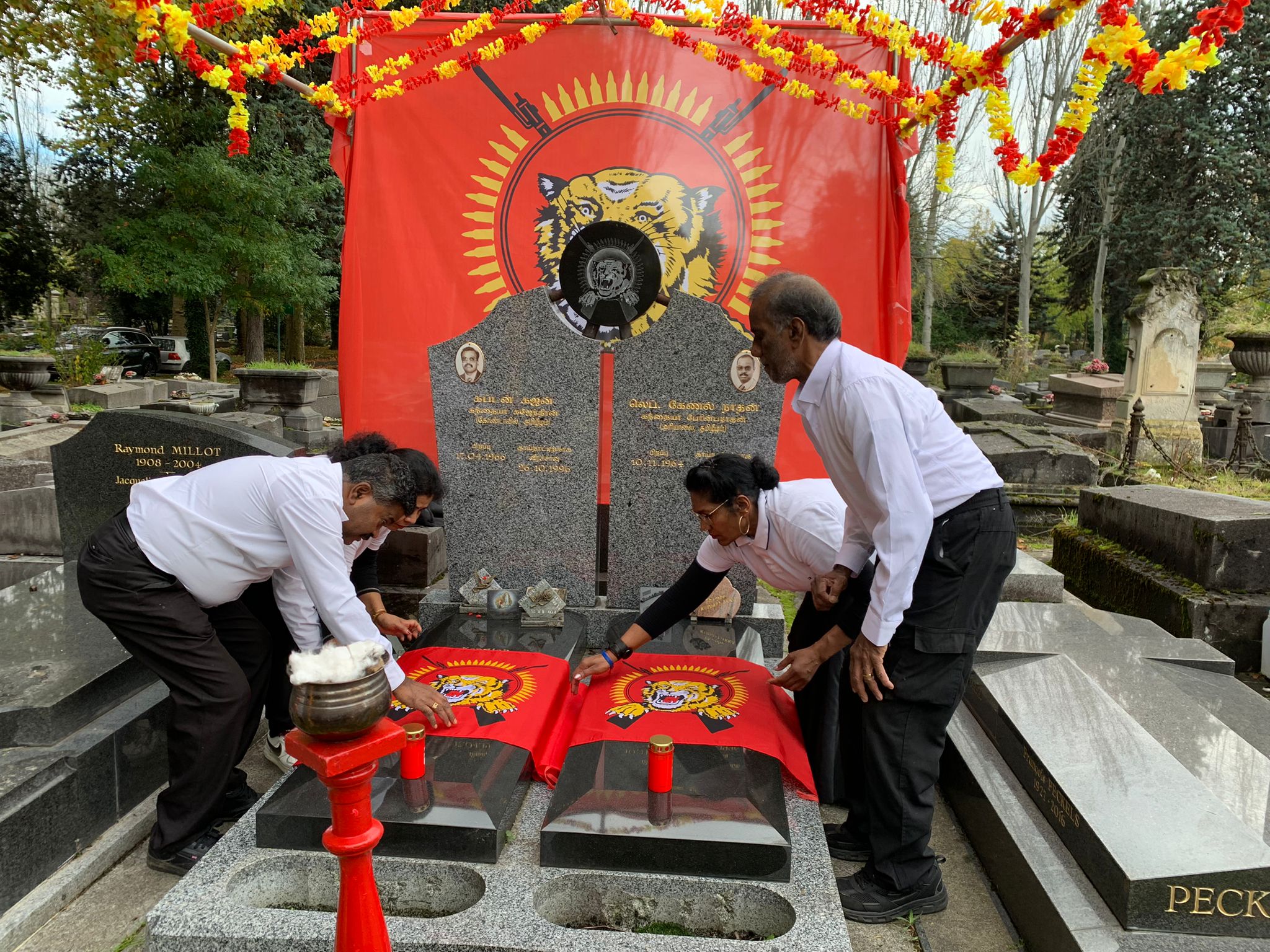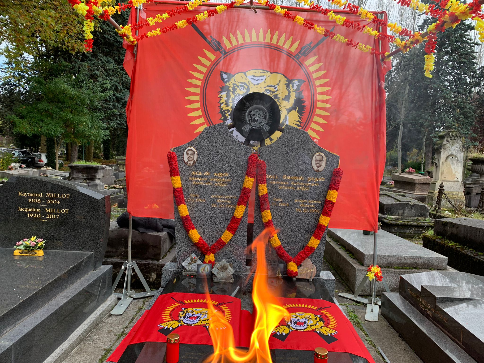பிரான்ஸ் தலைநகர் பாரிசில் வைத்து 26.10.1996 அன்று சிறீலங்கா அரச கைக்கூலிகளின் தாக்குதலில் வீரச்சாவைத் தழுவிக்கொண்ட தமிழீழ விடுதலைப் புலிகளின் அனைத்துலக நிதிப்பொறுப்பாளர் லெப்.கேணல் நாதன் மற்றும் ஊடகப்போராளியும் ஈழமுரசின் நிறுவன ஆசிரியருமான கப்டன் கஜன் ஆகியோரின் 28ஆம் ஆண்டு நினைவேந்தல் நிகழ்வு இன்று (26.10.2024) சனிக்கிழமை பிற்பகல் 15.00 மணியளவில் பிரான்சில் இம் மாவீரர்களின் கல்லறை அமைந்துள்ள பந்தன் துயிலும் இல்லத்தில் இடம்பெற்றது.