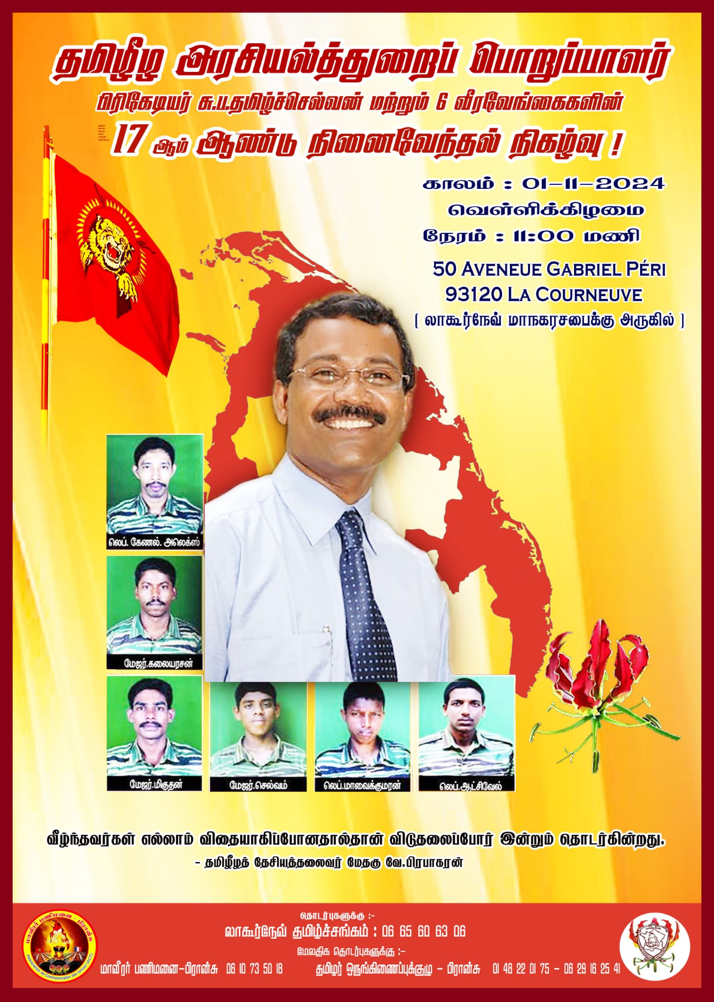 இவர்களின் 17 ஆம் ஆண்டு நினைவேந்தல் நிகழ்வு வரும் 01.11.2024 வெள்ளிக்கிழமை லாக்கூர்நெவ் பகுதியில் முற்பல் 11.00 மணிக்கு இடம்பெறவுள்ளது.