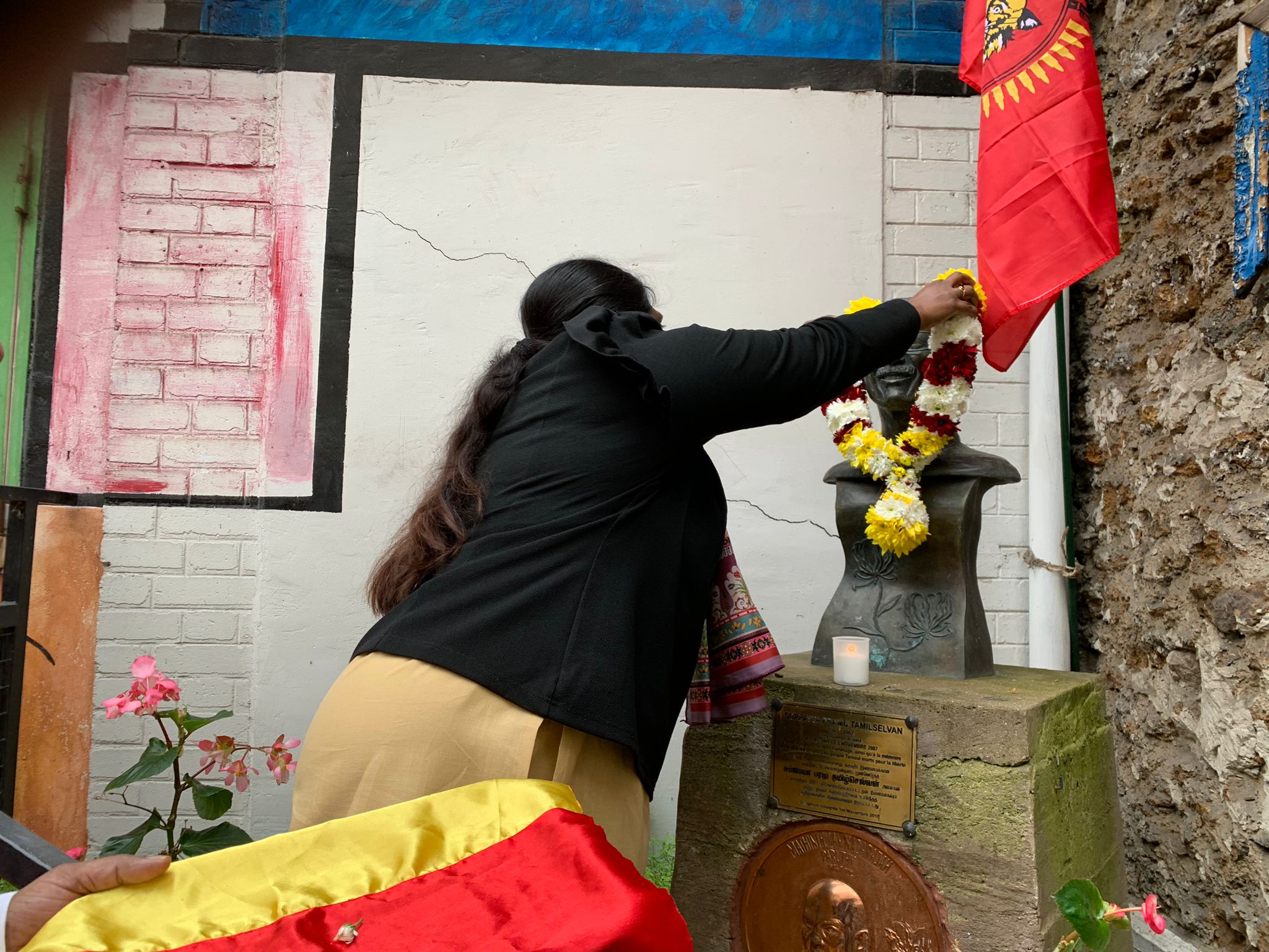 பிரிகேடியர் தமிழ்ச்செல்வன் அவர்களின் திருஉருவச்சிலைக்கும் கேணல் பரிதி அவர்களின் திரு உருவப் படத்திற்கும் மலர்வணக்கத்தை மாவீரர் தழல்வீரன் அவர்களின் சகோதரி செலுத்தினார்.