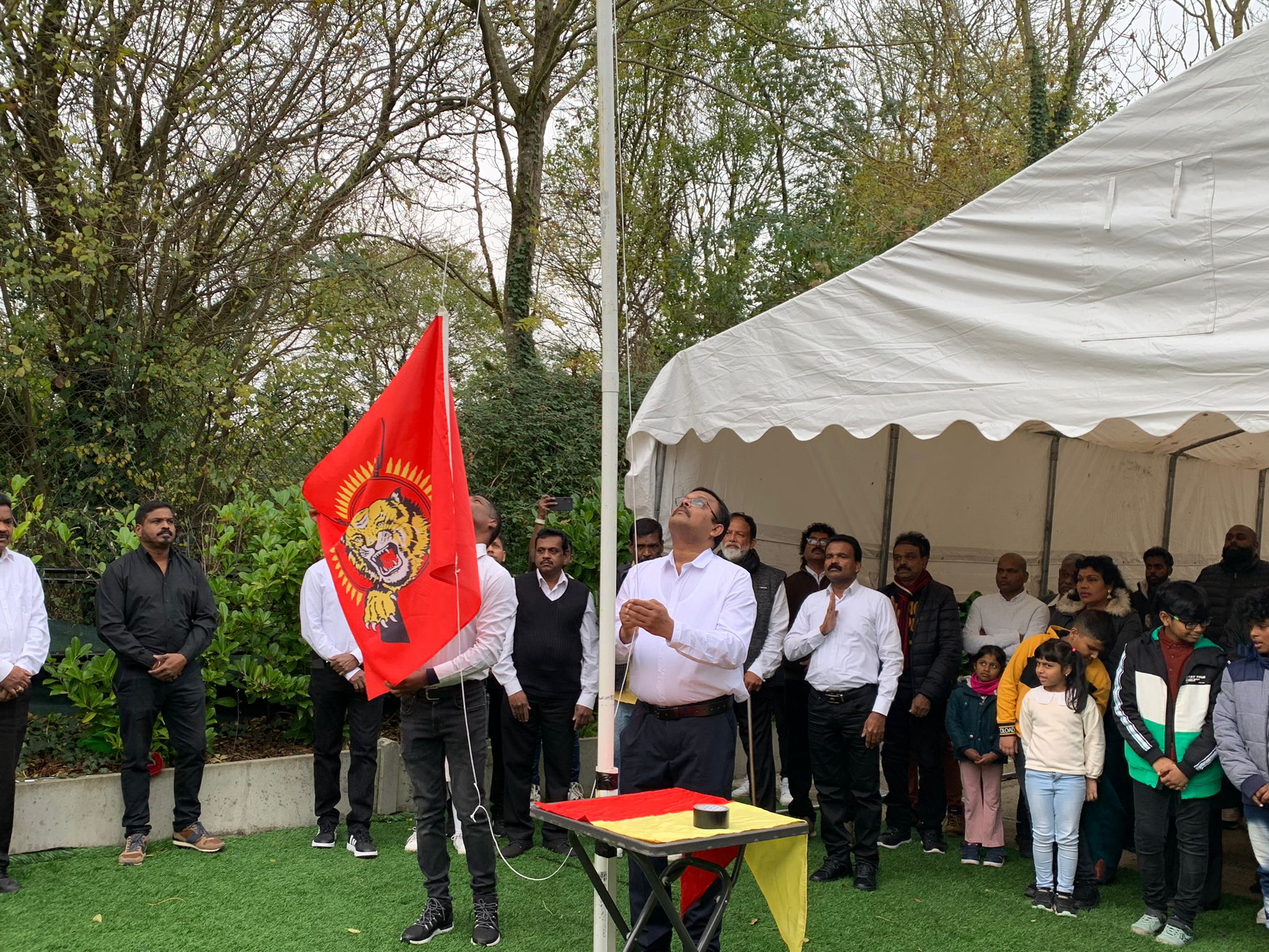 தமிழீழத் தேசியக் கொடியினை தமிழர் கலை பண்பாட்டுக் கழக அனைத்துலகத் தொடர்பகப் பொறுப்பாளர் திரு.அருண்முகிலன் அவர்கள் ஏற்றிவைத்தார்.