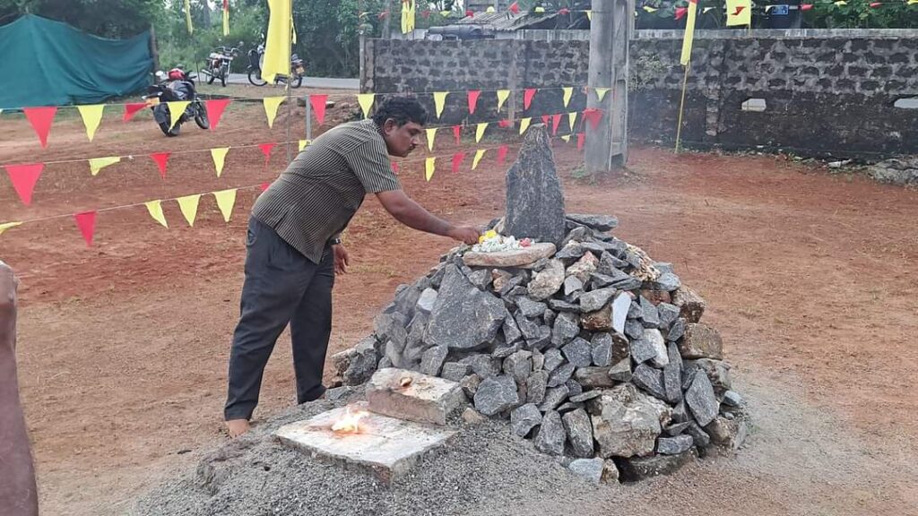 ஈழச்செய்திகள்சிறப்பு செய்திகள் கோப்பாய் மாவீரர் துயிலுமில்லத்தில் மாவீரர் வார 2 ஆம் நாள் நினைவேந்தல்! By வானகன் - November 22, 2024 0 189 கோப்பாய் மாவீரர் துயிலுமில்லத்தில் சுடரேற்றி அஞ்சலி செலுத்தி மாவீரர் வாரம் 2ஆம் நாள் நினைவேந்தல் இடம்பெற்றது. இதில் தமிழ்த்தேசிய மக்கள் முன்னணியின் முக்கிய உறுப்பினர்கள் பொதுமக்கள் கலந்து கொண்டு சுடர் ஏற்றி மலர்வணக்கம் செலுத்தினர்.