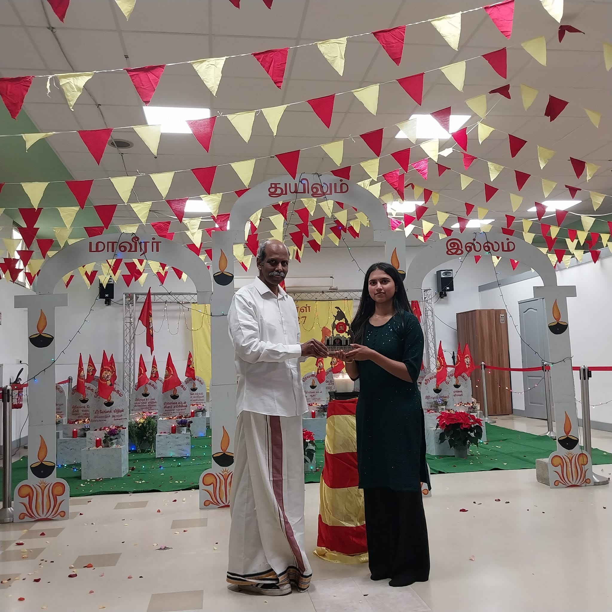 மிகவும் உணர்வுடன் நடைபெற்ற மாவீரர் நிகழ்வில் மாவீர் பெற்றோர், உறவினர் மதிப்பளிக்கப்பட்டனர். மதிப்பளிப்பு நிகழ்வை பிரான்சு தமிழர் ஒருங்கிணைப்புக்குழு சார்பில் திரு. சுப்பிரமணியம் மகான் அவர்களும், மனிதநேய செயற்பாட்டாளரான திரு. நடராசா கிருபானந்தன் அவர்கள் முன்னின்று நடாத்தி வைத்தார்.