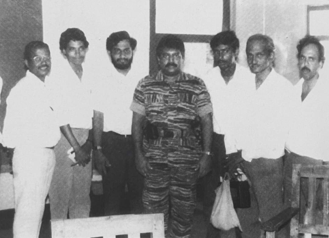 தலைவர் பிரபாகரன் 1991 ஓகஸ்ட் 31 ஆம் திகதி யாழ்ப்பாணத்தில் பத்திரிகையாளர்களைச் சந்தித்த மிக அரிதான ஒரு நிகழ்வில் எடுக்கப்பட்ட படம். இதில் மூத்த பலருடன் தோன்றும் எனக்கு அப்போது வயது 22. பத்திரிகைப்பணி மீதான ஒருவித லட்சிய வெறியுடன் உதயனில் இணைந்துகொண்ட ஆரம்ப காலம் அது.