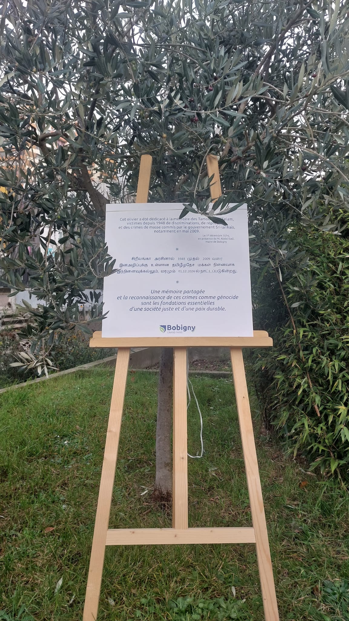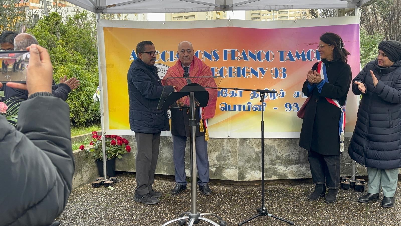 தமிழ்மக்கள் அதிகமாக வாழும் 93 மாவட்டம் Bobigny மாநகரத்தில் மாநகரசபைக்குரிய நிலத்தில் Parvis de L’ Hotel de Ville de Bobigny இடத்தில் மாநகரசபை முதல்வர் Monsieur Abdel Sadi, துணை முதல்வர் Monsieur Ranjit SINGH மற்றும் சென் சென்டெனி மாநகர சபை, லாக்கூர்நோவ் மாநகரசபையின் ஆலோசகர் உறுப்பினர் சுகுனா, பொபினி பிராங்கோ தமிழ்ச்சங்கம், பிரான்சு தமிழ்ச்சங்கங்களின் கூட்டமைப்பு இணைந்து இதனை ஏற்பாடுசெய்திருந்தனர்.