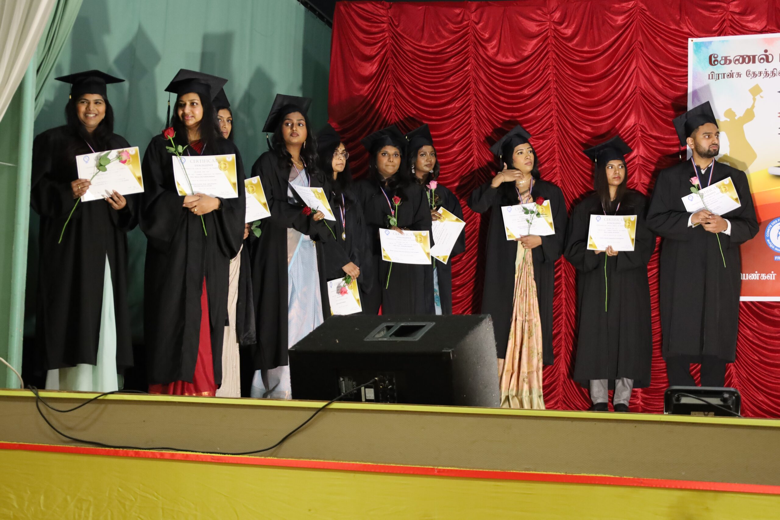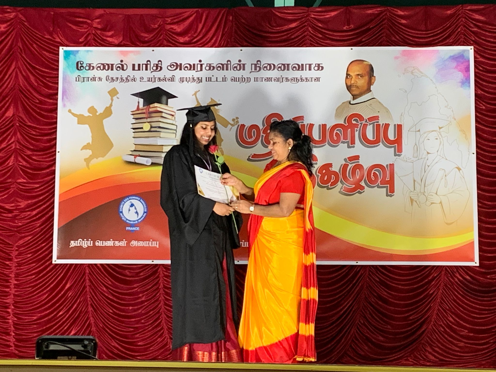 உணர்வுபூர்வமாக இடம்பெற்ற இந்நிகழ்வில் பிரான்சு மண்ணில் உயர்கல்வியை முடித்து பல்வேறு துறைகளிலும் பட்டம்பெற்ற 22 தமிழ் மாணவ மாணவியர் மதிப்பளிப்புச் செய்யப்பட்டிருந்தனர். இவர்களுக்கான மதிப்பளித்தலை தமிழ்ப்பெண்கள் அமைப்பு – பிரான்சு உறுப்பினர்கள் வழங்கியிருந்தார்கள்.