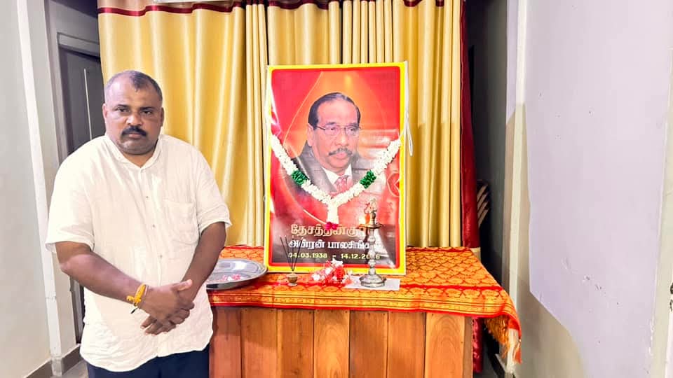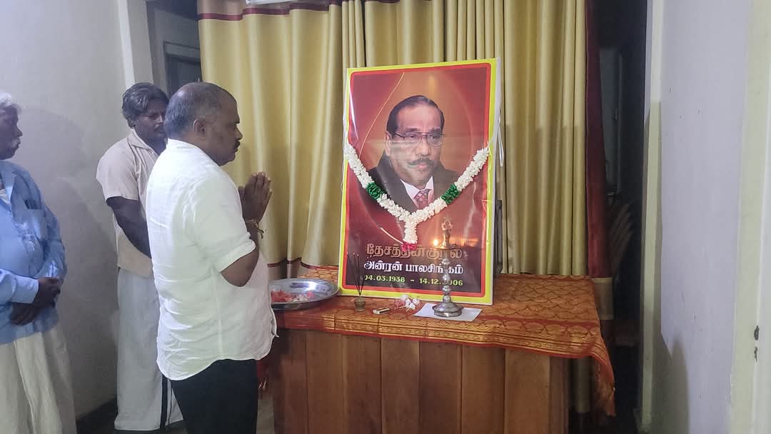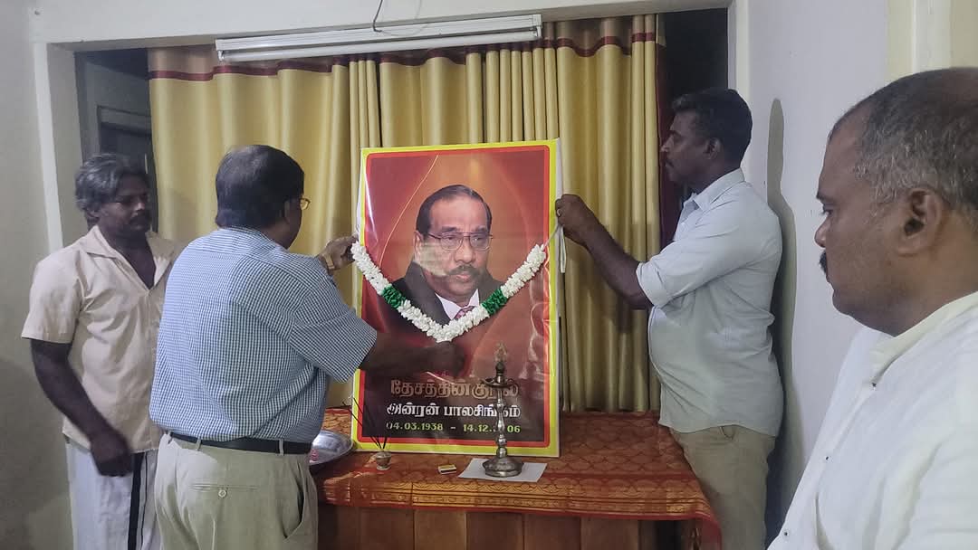 ஈழச்செய்திகள்சிறப்பு செய்திகள்காணொளிகள் யாழில் தேசத்தின் குரல் கலாநிதி அன்ரன் பாலசிங்கம் அவர்களின் 18ஆம் ஆண்டு நினைவேந்தல்! By வானகன் - December 15, 2024 0 441 அரசியல் ஆலோசகர் தேசத்தின் குரல் கலாநிதி அன்ரன் பாலசிங்கம் அவர்களின் 18ஆம் ஆண்டு நினைவேந்தல் தமிழ்த்தேசிய மக்கள் முன்னணியின் யாழ். தலைமையகத்தில் செயலாளர் செல்வராசா கஜேந்திரன் தலைமையில் இடம்பெற்றது.