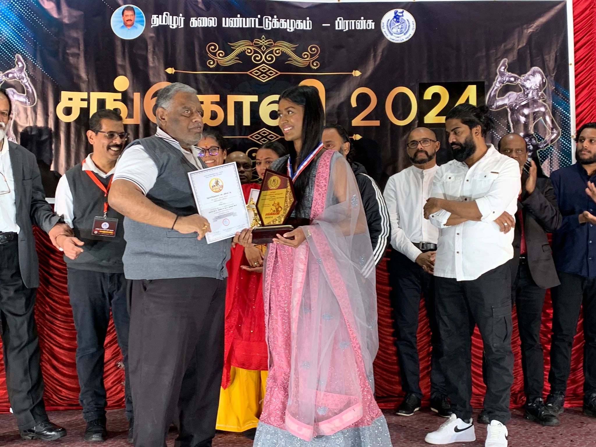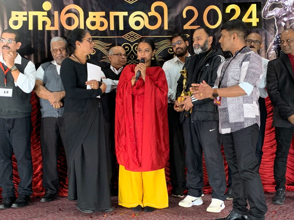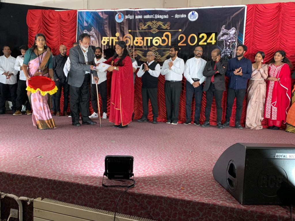 கடந்த ஆண்டுகளில் சங்கொலி விருதினை பெற்றவர்கள், இசைக்கலைஞர்கள், நடுவர்கள் , கட்டமைப்புப் பொறுப்பாளர்கள் மத்தியில் மக்களின் கரகோசத்தோடு செல்வி திருவருள் லேயா அவர்களுக்கு ‘சங்கொலி’ 2024 விருது வழங்கி மதிப்பளிக்கப்பட்டது.