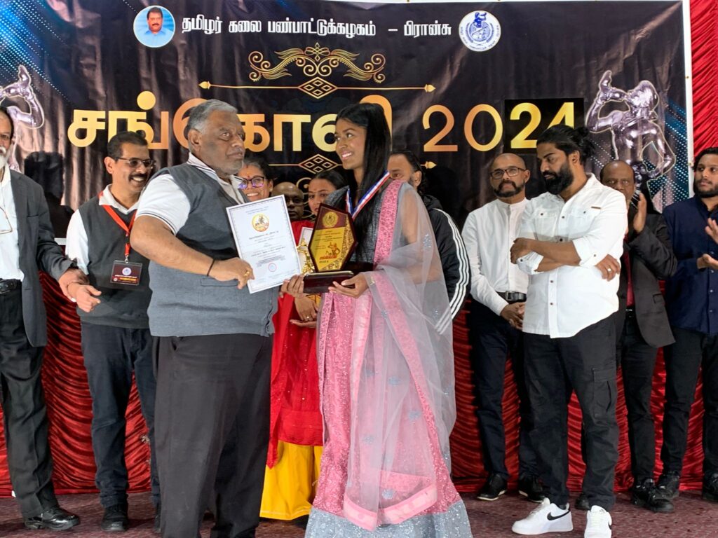 குறித்த மதிப்பளித்தலினை தமிழர் ஒருங்கிணைப்புக் குழு பரப்புரைப் பொறுப்பாளர் திரு.மேத்தா, தமிழர் கலை பண்பாட்டுக் கழகம் – பிரான்சு பொறுப்பாளர் திரு.மாறன், துணைப் பொறுப்பாளர் திரு.செல்வா ஆகியோர் இணைந்து வழங்கியிருந்தனர்.