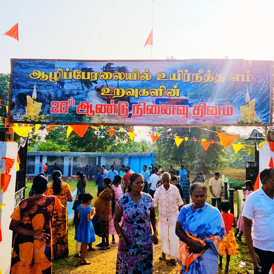 ஈழச்செய்திகள்சிறப்பு செய்திகள் முல்லைத்தீவு நினைவாலயத்தில் ஆழிப்பேரலை 20 ஆம் ஆண்டு நினைவேந்தல்! By வானகன் - December 26, 2024 0 209 ஆழிப்பேரலையால் காவுகொள்ளப்பட்ட மக்களின் 20 ஆம் ஆண்டு நினைவேந்தல் நிகழ்வு இன்று 26.12.2024 வியாழக்கிழமை புதுக்குடியிருப்பு சுனாமி நினைவாலயத்தில் உணர்வோடு இடம்பெற்றது. ....