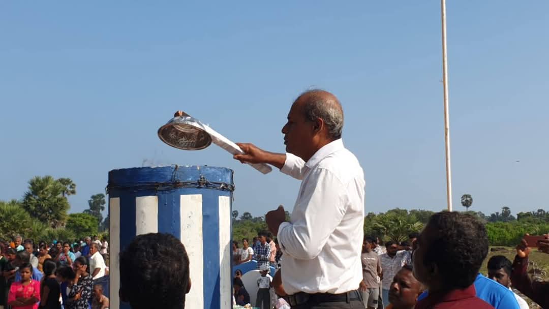 சுனாமியால் உயிரிழந்தவர்களுக்காக அமைக்கப்பட்ட தூபிக்கு மாலை அணிவிக்கப்பட்டு 9.25 மணிக்கு பொதுச்சுடர் ஏற்றப்பட்டது.