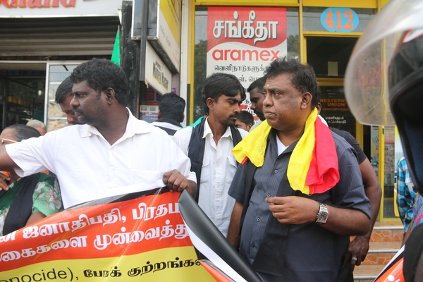 ஜனாதிபதி மைத்திரிபால சிறிசேன தலைமையிலான அரசாங்கம் தமிழ் மக்களின் பிரச்சினைகளுக்கு உரிய தீர்வு எதனையும் பெற்றுக் கொடுக்காமைக்கு எதிர்ப்புத் தெரிவித்து கறுப்புக் கொடி ஏந்தி போராட்டத்தை முன்னெடுத்தார் தமிழ்த் தேசியக் கூட்டமைப்பின் வடக்கு மாகாண சபை உறுப்பினர் எம்.கே.சிவாஜிலிங்கம்.